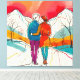 The warm, rich colours evoke a sense of love and tranquillity, blending the natural beauty of the mountains with the intimacy of the couple's journey. This piece invites viewers to experience the magic of a romantic escape into nature's embrace.