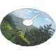 A Christmas Tree skirt showing a Christmas tree in the mountains.