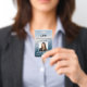These vertical ID badges are easy to customize with name, title, hospital name, logo, and ID number on the front. On the back is an opportunity for a bar code and return information. If you need any assistance, feel free to message me. I'm always happy to help.