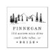 Return address rubber stamp features your name and return address beneath a sketched illustration of mountain peaks and pine trees, perfect for forest, mountain or woodland homeowners, or as a charming finishing touch for your holiday cards.