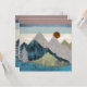 Modern landscape with unique colours and patterns showing a mountain landscape with a striped skyline.