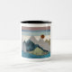 Modern landscape with unique colours and patterns showing a mountain landscape with a striped skyline.