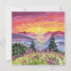 A beautiful hand painted landscape of a sunrise and mountain scene.