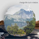 Majestic summer landscape: mountain peaks, blue sky and wooden cottages among trees. Great gift for nature, tourism, and hiking lovers. Lovely addition to your home decor. It will especially work well with the rustic, Scandinavian and contemporary style of decor. You can delete the text "The journey matters more than the destination" or replace it with your own message (click "Personalize this template").