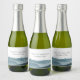 Custom mini sparkling wine bottle labels with mountain scene. Blue mountain ridges is the image across the bottom of the labels. A single line of text can be added for weddings or other events. The label design will not work on all other bottle types, but may look fine on some.