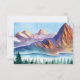 Mountain Wedding RSVP Card with number attending option. The card is decorated with tall pine trees on the right of the card with a blue sky watercolor background. The back of the card includes a beautiful watercolor mountain scene with water and a pine forest in the foreground. This rustic mountain reply card matches a collection in my store.