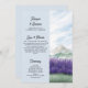 Mountain Wedding program, perfect for a mountain wedding resort or destination wedding in scenic countryside. The design features modern typography and an idyllic watercolor landscape. The dreamy mountain ridge scene depicts mountains, green hills and a peaceful country valley meadow with swathes of lavender, purple wildflowers or highland heather moor - whatever speaks to you and your chosen destination. For co-ordinating invitations, stationery and day-of-event decor, please browse my Mountain Lavender Wedding Collection or message me to add any additional items you need.