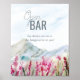 Mountain wedding open bar sign with an idyllic country landscape of blue ridge mountains and pink wildflower meadow. Beautiful nature inspired scenic design - perfect for outdoor destinations, mountain lakeside and country park retreats or dusty blue gray and pink color themes. Please browse my Mountain Meadow collection for matching items or message me to create the templates you need.