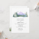 This elegant all in one wedding invitation features a watercolor forest and mountain scenery, minimalist details and calligraphy text. The back has additional details and a QR code making enclosure cards optional. It is classic yet modern and sure to set the scene for your mountain top destination wedding.