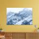 Close up landscape photograph of majestic mountains covered in snow and fog.