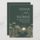 A beautiful and romantic sunset-in-the-mountains wedding faux foil invitation, featuring the glowing sun descending behind mountain peaks, clouds, birds in flight, a serene forest, and a peaceful lake. A stunning and unique wedding invitation perfect for nature lovers, adventure seekers, and couples who adore mountains, camping, and the great outdoors.