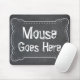 "Mouse Goes Here" Perfect mousepad for anyone strong with the sarcasm. Handwriting-style white text on a chalkboard background with a white decorative frame.