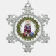 The Mouse king Nutcracker ballerina pewter snowflake Christmas ornament. This beautiful pewter snowflake ornament features the mouse king from the nutcracker in the centre of a holiday wreath with gifts. The back is pewter. A wonderful keepsake or gift to add to any ornament collection, and especially for those who collect nutcracker or mouse king ornaments. Please visit our store for more styles and gift products in this wonderful nutcracker theme!