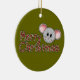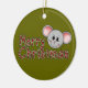 A little grey mouse and red and green candy cane striped text that reads "Merry Christmas" on a keepsake holiday ornament that you can change the shape of before ordering.