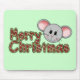 A little grey mouse and candy cane striped text that reads "Merry Christmas" on Christmas holiday T-shirts, hoodies, sweatshirts, bodysuits, tote bags, stickers, magnets, and other holiday clothing and gifts.
