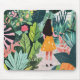 Mouse pad with botanical design, girl in the garden