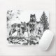 A pen and ink illustration of three wolfs standing on a rock out cropping. Great custom mouse pad for a wildlife lover!