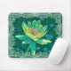 Mouse pad with a designer Water Lily in hunter green with a turquoise and yellow water lily surrounded by flowers and faux lace.  Pretty and colorful to brighten your office, or home.  Thanks to the Hungryjpeg and Commercial Use Scraps for some of the elements in the design.