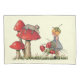 This is my original artwork of a cute mouse fast asleep as he straddles a large red toadstool. A little girl who has been picking flowers stops by out of curiosity to have a look at the little mouse.