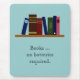 Books on shelf. Below drawing is the text "Books ... no batteries required."