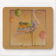 A coloured pencil illustration of a Carousel Stork that features a baby nestling on the Stork and floating balloons adding playfulness and movement. Perfect for a baby shower gift or birth announcement - personalize your purchase with a name or message!