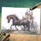 Découvrez la magie du steampunk avec notre papier découpage exquis! Voici le cheval fascinant d'inspiration aquarelle orné d'accents métalliques captivants. Admirez les couleurs verdâtres et bleues enchanteresses et laissez votre créativité s'envoler dans un univers de possibilités infinies !