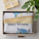 La chouette abstraite mignonne dans les tons bleu et violet est imprimée sur du papier de tissu personnalisé. Le texte dit, Joyeux anniversaire, qui peut être customisé. Merci pour faire du shopping à CherylsArt sur Zazzle.