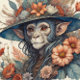 Beautiful and mystical fun chimp monkey with flowery hat. Perfect for all your decoupage projects and furniture transformation decoupage transferts.