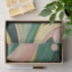 Ce superbe papier d'emballage cadeau présente un motif boho époustouflant avec des lignes organiques abstraites dans une belle combinaison de vert sauge, rose poussiéreux et jaune ocre ensoleillé.