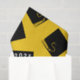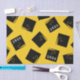 Cadeau de graduation créatif ou tissu de décoration de fête avec capuchons de graduation noir et or sur arrière - plan jaune. Modifiez le texte pour customiser votre grade favori.