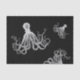 Une grande pieuvre vintage en blanc est posée sur un arrière - plan noir pour faire un grand papier de tissu sur le thème de la mer et de la plage, parfait pour l'emballage cadeau ou découpage et l'artisanat.