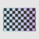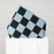 Papier de tissu bleu et violet avec motif à damiers noir pour découpage et artisanat et mobilier upcycling.