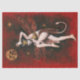 Ce papier tissulaire est illustré avec une dame de diable dansante vintage sur un arrière - plan rouge