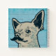 Quirky moustache dog art on pastel blue brick background to customise with your initials or name.