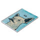 Quirky moustache dog art on pastel blue brick background to customise with your initials or name.
