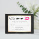 Une carte RSVP de mariage classique et classe sur un arrière - plan en tableau noir avec un cadre au centre avec un dégradé or. Conçu avec une illustration de style moderne avec des lèvres bissy en glam rose et une moustache rétro.