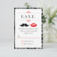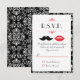 Des lèvres rouges pulpeuses et une moustache élégante sont les vedettes de ce moderne faire-part de mariage. Le motif damassé en arrière-plan ajoute une touche de classe.