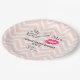 Moustache & Lips Mr. & Mrs. Peach Chevron Wedding Paper Plate