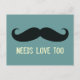 Moustache Needs Love Too Funny Postcard