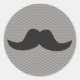 Moustache on grey chevron background classic round sticker