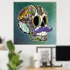 Hand drawn ink illustration of a Day of the Dead sugar skull sporting a spiffy moustache! Add text to personalize and you've got one awesome poster! This is the colour version - there are also a black and white and vintage versions, so check out all of the available designs and products!