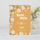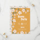 Annoncez votre jour spécial avec style avec cette carte "Save the Date" dans le vent. Caractérisée par un fond moutarde audacieux, des illustrations florales fantaisistes et une typographie rétro funky, ce design capture l'esprit de la romance des années 70 avec une touche boho moderne. Parfait pour les couples qui prévoient un mariage amusant, élégant et inoubliable, que ce soit une garden-party estivale ou une célébration boho rustique. Personnalisez avec vos noms et les détails du mariage pour donner le ton d'une histoire d'amour vraiment dans le vent.