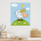Un mouton de style dessin animé avec un sourire amusant au sommet d'une colline. Ce design semble vraiment efficace sur ces Poster