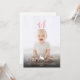 This adorable personalizable Easter photo card features your custom photo as the background with pink and white bunny ears overlay placed on top. The ears are movable and can be resized or repositioned using Zazzle’s editing tools, so be sure to adjust them to fit your photo as they will not place automatically.