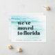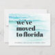 If you're planning a move to Florida, here is a moving announcement card that will entice your family and friends to come visit - soon. The design itself... turquoise blue ocean waves, bold typography saying "we've moved to Florida," plus your name and new address on front of the card... announces your news in a way that can't be missed. All text on front and back of the card can also be personalized with your new address and other contact information.