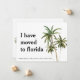 If you're planning a move to Florida, here is a moving announcement card that will get the notice of your family and friends. Three tropical palm trees, bold typography saying "I have moved to Florida," plus your name and new address on the front of the card tell your news in a way that can't be missed. All text on front and back of the card can also be personalized with your new address and other contact information.