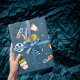 Enjoy a special night and wrap up a gift for someone special with this movie night iconic design. All the icons of a movie night are there, popcorn, film, 3d glasses, soda, clapboards and movie tickets. Enjoy the show and this unique pattern design.