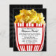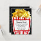 Big bag of popcorn, labelled with your custom text. Awesome Sleepover or Movie Night Party Custom Invitations, in black, white, yellow and red. Red and white striped popcorn box with yellow popcorn and black and white rays of light in the background Customize the pop corn tub with your party info. Makes a great, unique party invitation for the birthday boy, girl, or any occasion!