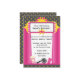 This party invitation highlights the guest of honour, putting their name in lights! In Pink and Grey.
