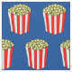Cool movie themed fabric with cute popcorn boxes with yellow popped corn in a red and white striped package. Pretty blue background for a night with the stars. Make cool film curtains or clothes with this fun pattern.
